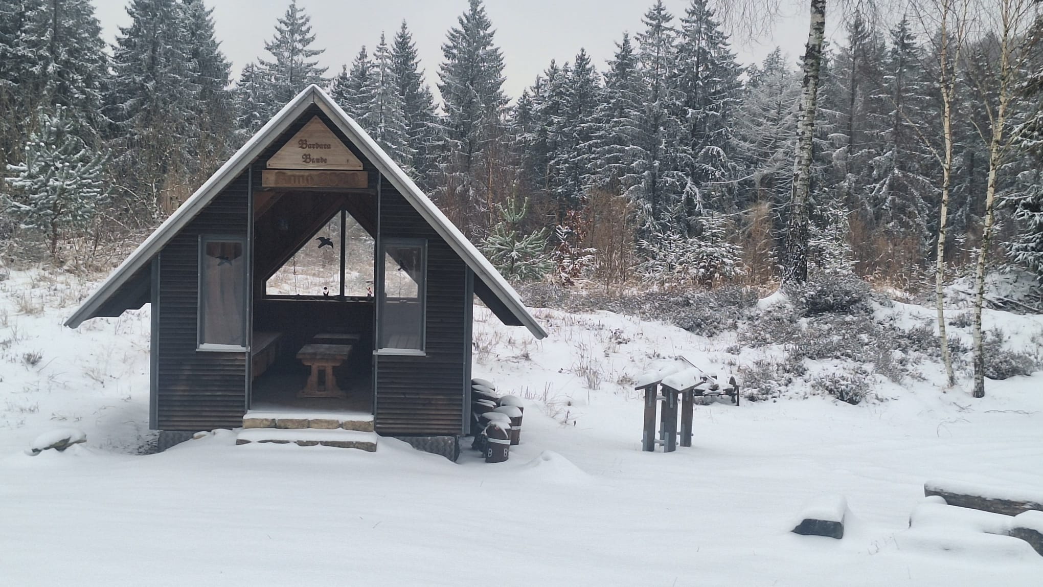 Der Winter hat im Januar 2026 viel Schnee beschert und so sind auch die Hütten des Heimatvereins winterlich anzuschauen.